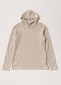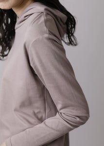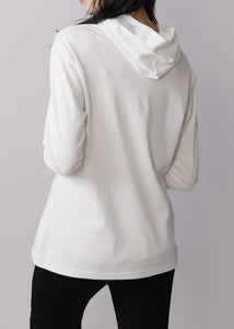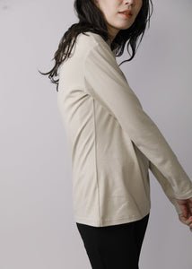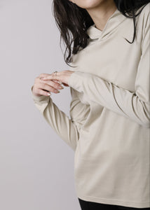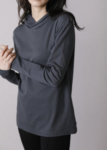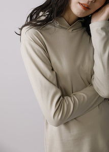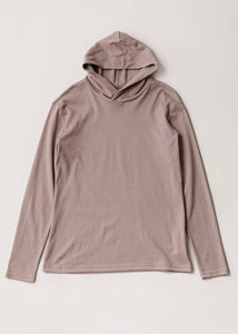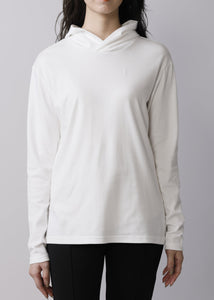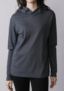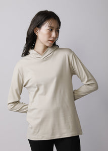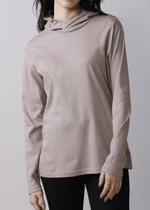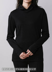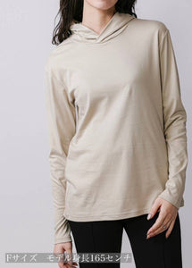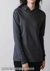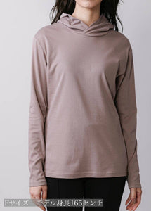 This long-sleeved hooded T-shirt (for women) is made from "Curefiro," a fiber blended with "BANSEI," a wild organic ingredient with high antioxidant properties.