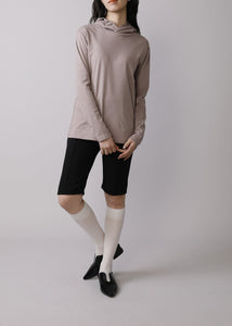 The small hood is perfect as an inner layer for outerwear. Wear it under a jacket, coat, or knitwear to take advantage of Cure Filo's functionality even when you're on the go. Pair it with sweatpants or leggings for a relaxed look at home or during light exercise.